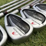 This Benross Delta X iron set is in good overall condition. Please note, the #7 iron is the head only and needs to be reshafted. There are strike marks on the club faces and soles from regular use. The shafts are regular flex Tour Lite KBS steel shafts and are standard length.