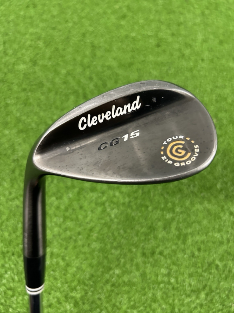 This left-handed Cleveland CG15 lob wedge is in good overall condition. The are some cosmetic marks on the club head as well as strike marks on the club face from regular use. The wedge features a wedge flex Dynamic Gold Steel shaft and has a standard playing length of 35.5 inches. Please note, the grip has been installed with the logo facing down.