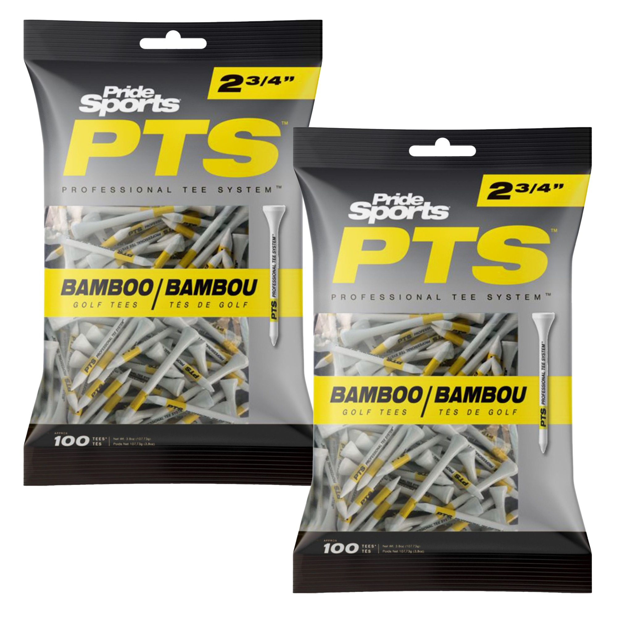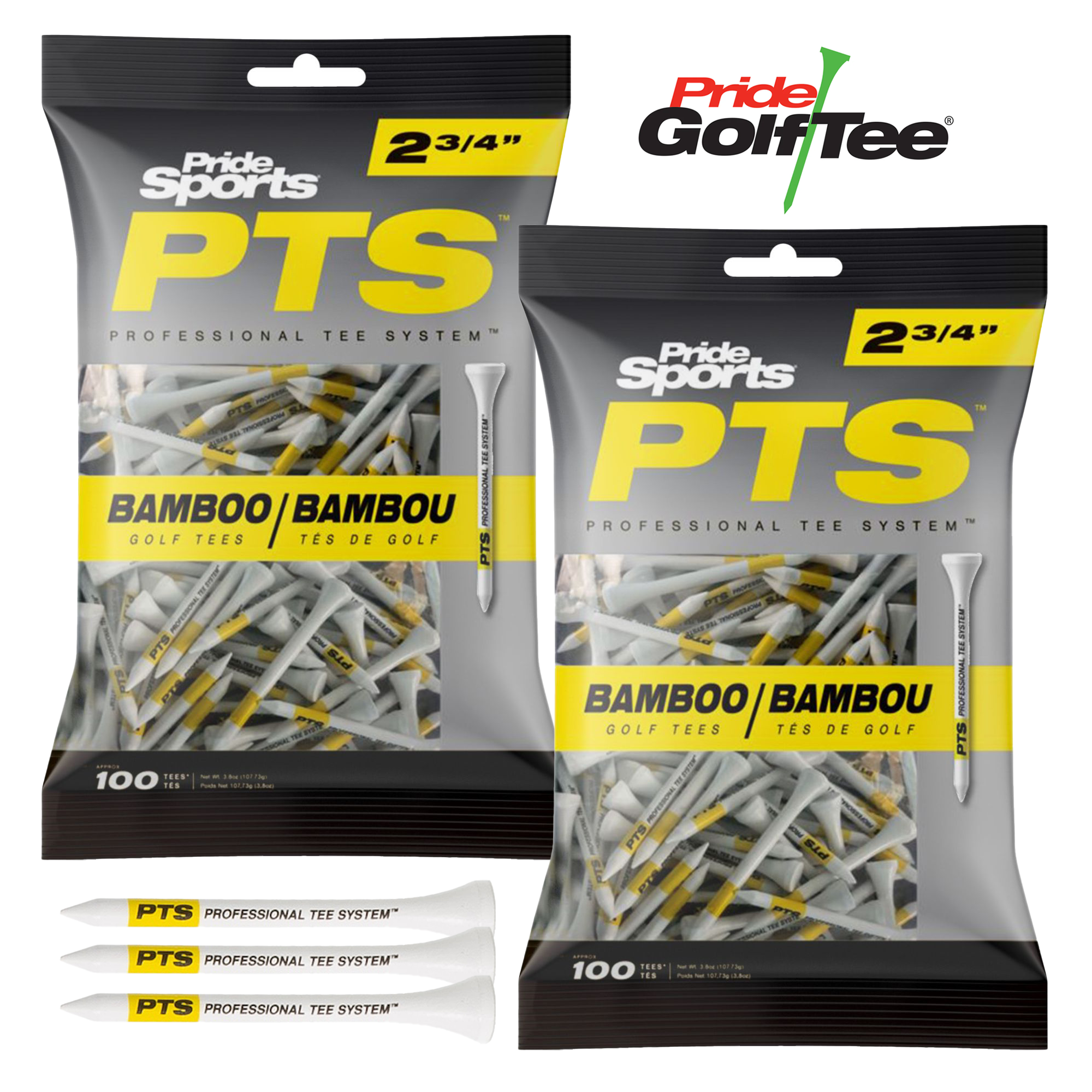 Pride PTS Bamboo Tees – Pro Length 2.75″ – Twinpack (2 x 100 Pack)